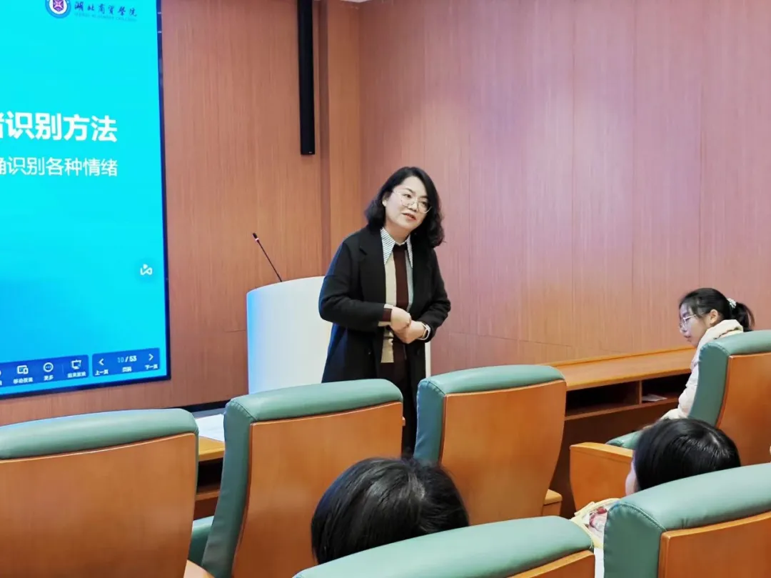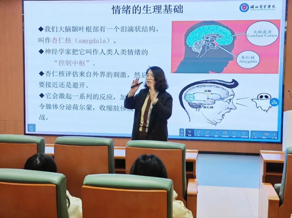王祥君以生动的神经科学知识带领同学们探索情绪背后的生理机制,详细介绍了大脑中“杏仁核”作为情绪“控制中枢”的功能,帮助同学们理解情绪反应的本质。她还结合实例,引导大家通过面部表情、体态、语言等外在表现识别情绪状态,并深入浅出地分析了嫉妒等复杂情绪的内在构成与觉察方式,鼓励大家以科学、平和的视角看待自身情绪。