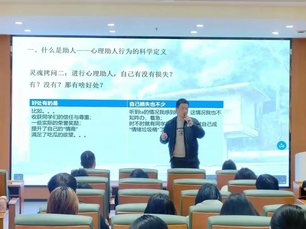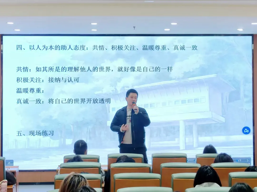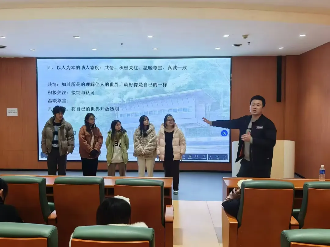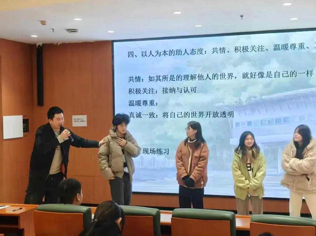 此次心语讲坛通过系统的知识讲解,围绕“同辈心理助人”这一概念,向大家强调了个人成长在助人工作中的重要性,并介绍同辈助人工作的原则与目标,最后以现场练习的方式带领同学们体验了以人为本的助人态度。为同学们在今后的学习生活中,关注个人身心安全与成长,以及心理委员在班级中开展力所能及且及时有效的助人工作,给与了一定的参考与指导,为营造健康和谐的校园心理环境奠定了良好基础,也为本学期的“心语讲坛”系列讲座活动画上了完整句号。