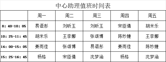 2025—2026学年第一学期大学生心理健康教育中心助理值班表(咸宁校区)
